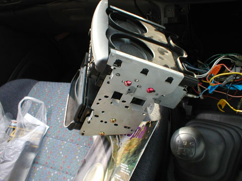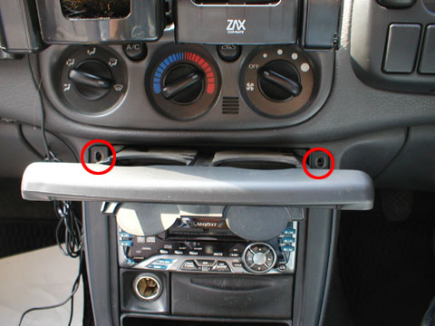 ねじ止めの2DINオーディオを外した状態。