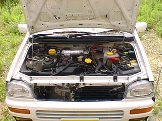 非常に窮屈なエンジンルームです。