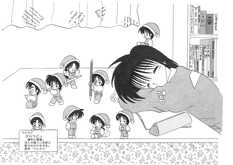 元漫研の同級生数人に声をかけてはじめた「カレンダー企画」用のイラストとして描きました。描いた“こびとさん”は僕自身も含めた元漫研メンバー。