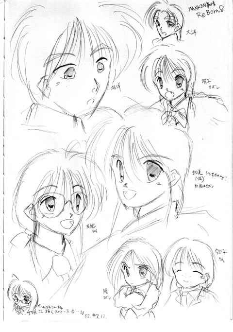 「はじまりのMANKEN事情」として作り始めていたゲームのキャラを 自分の絵で起こし直したモノです。 元絵は「恋愛シミュレーションツクール2」の絵で、 その設定に合わせてます。 陽、今日子、千咲は完全にSDキャラになってますが…(^^;) 眼の描き方を変えようとしていて、ようやく成功した絵です。 最初に描いた和美と、拓洋は少しおかしい感じですが…(^^;) 我ながら晴子はうまく描けたなあ…と自画自賛。 ちなみに「RB」はRebornの略です。 スキャナーの調子が悪く、あっちこっちに影があります(^^;) ちなみに、FINALとは別モンになる予定ですので、FINALのキャラとイメージが違う人もいます。 |